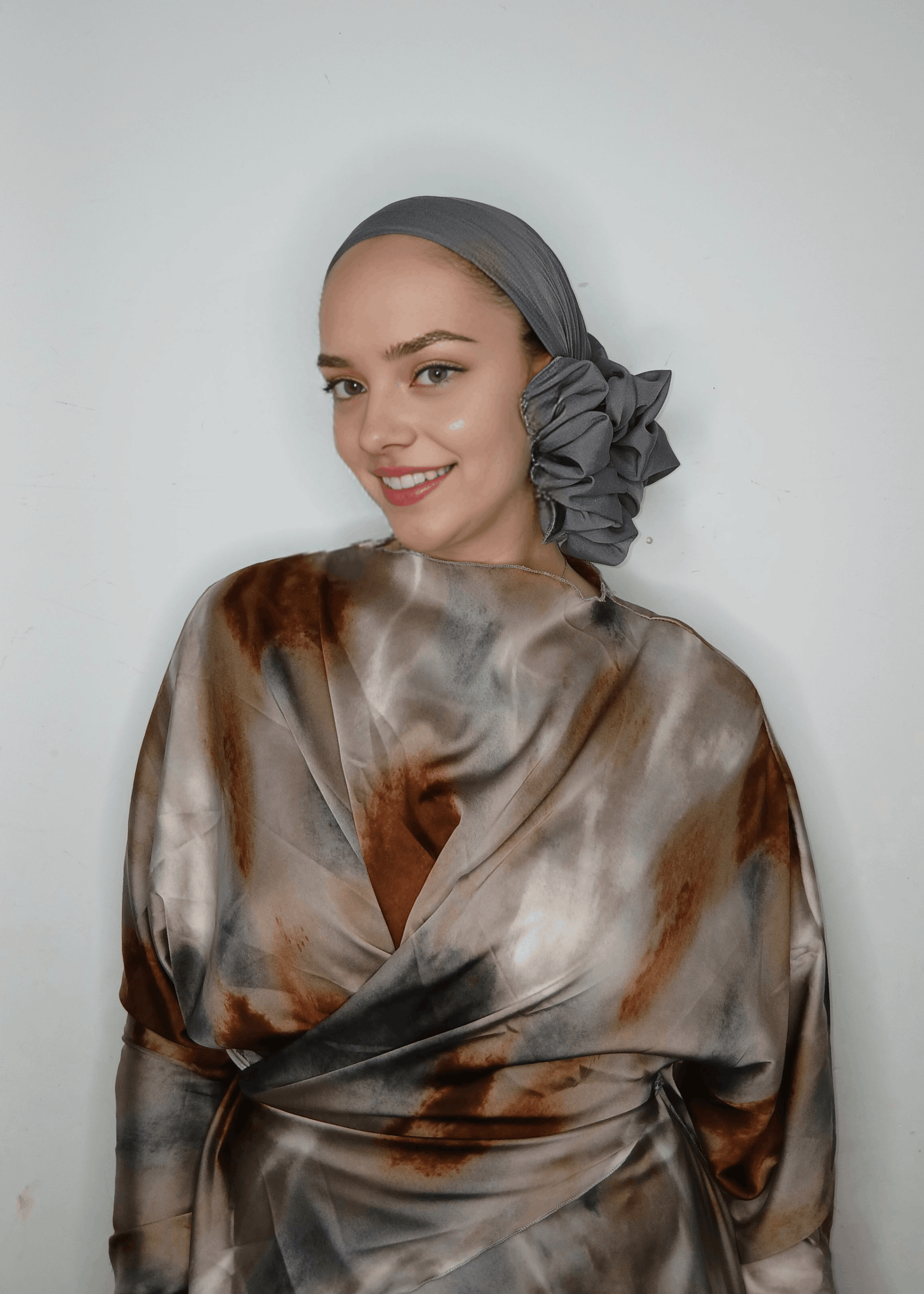 מטפחת בצבע אפור חלק , בד נוח עם מתיחות עדינה ולא מחליק