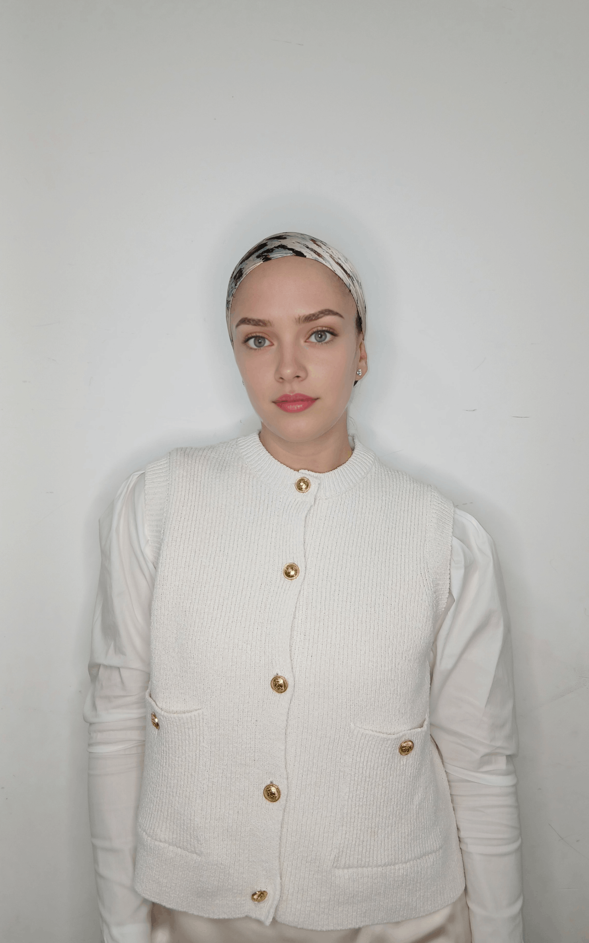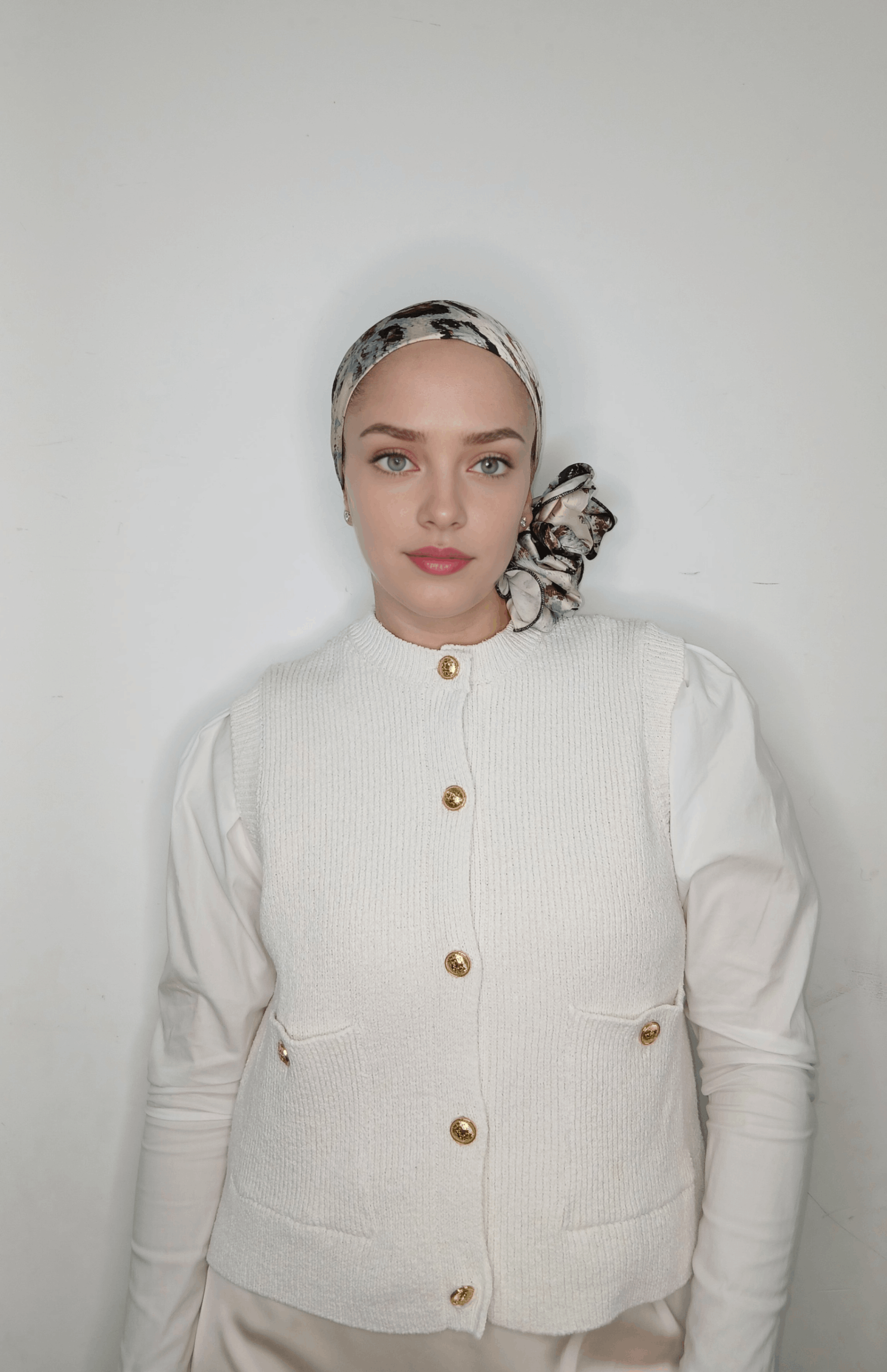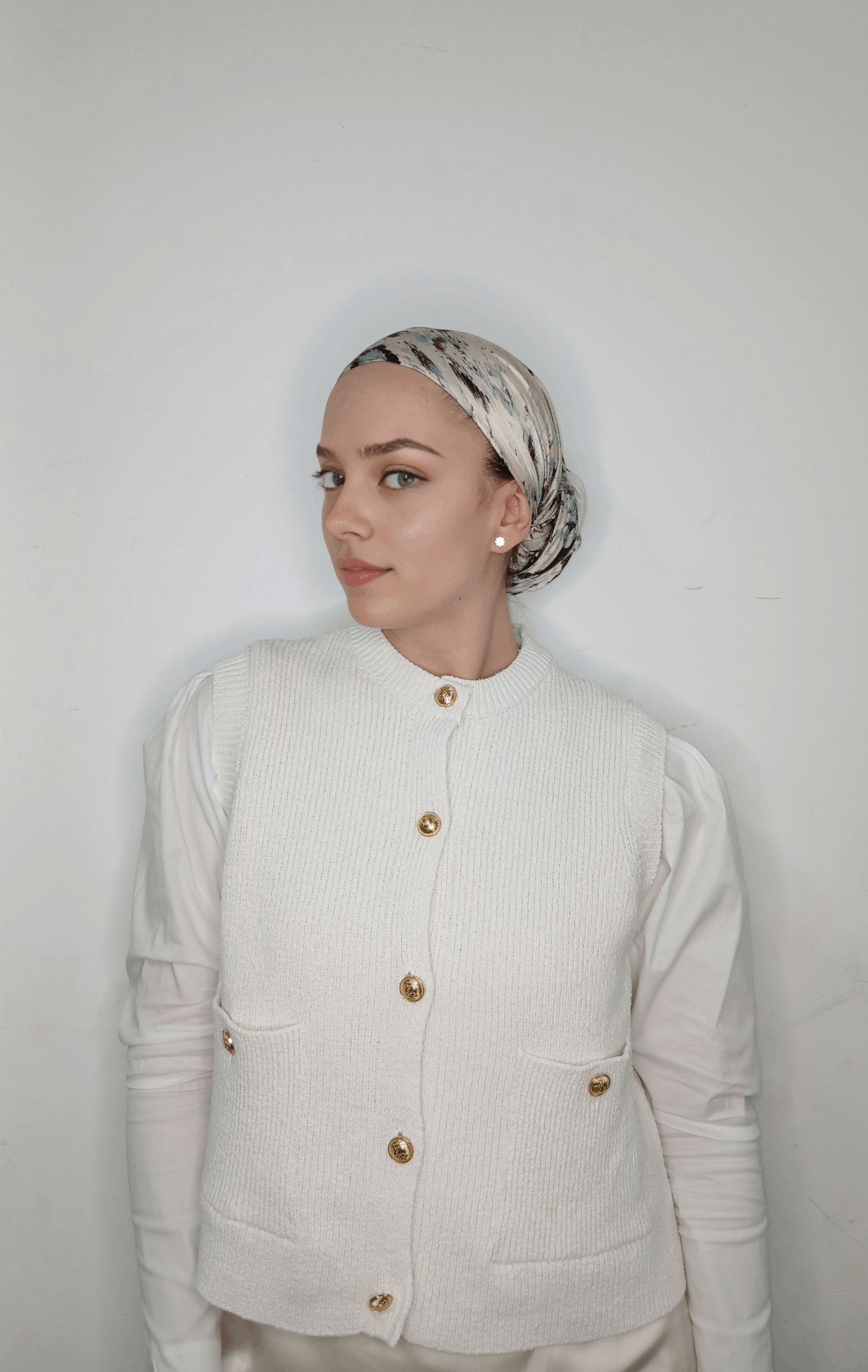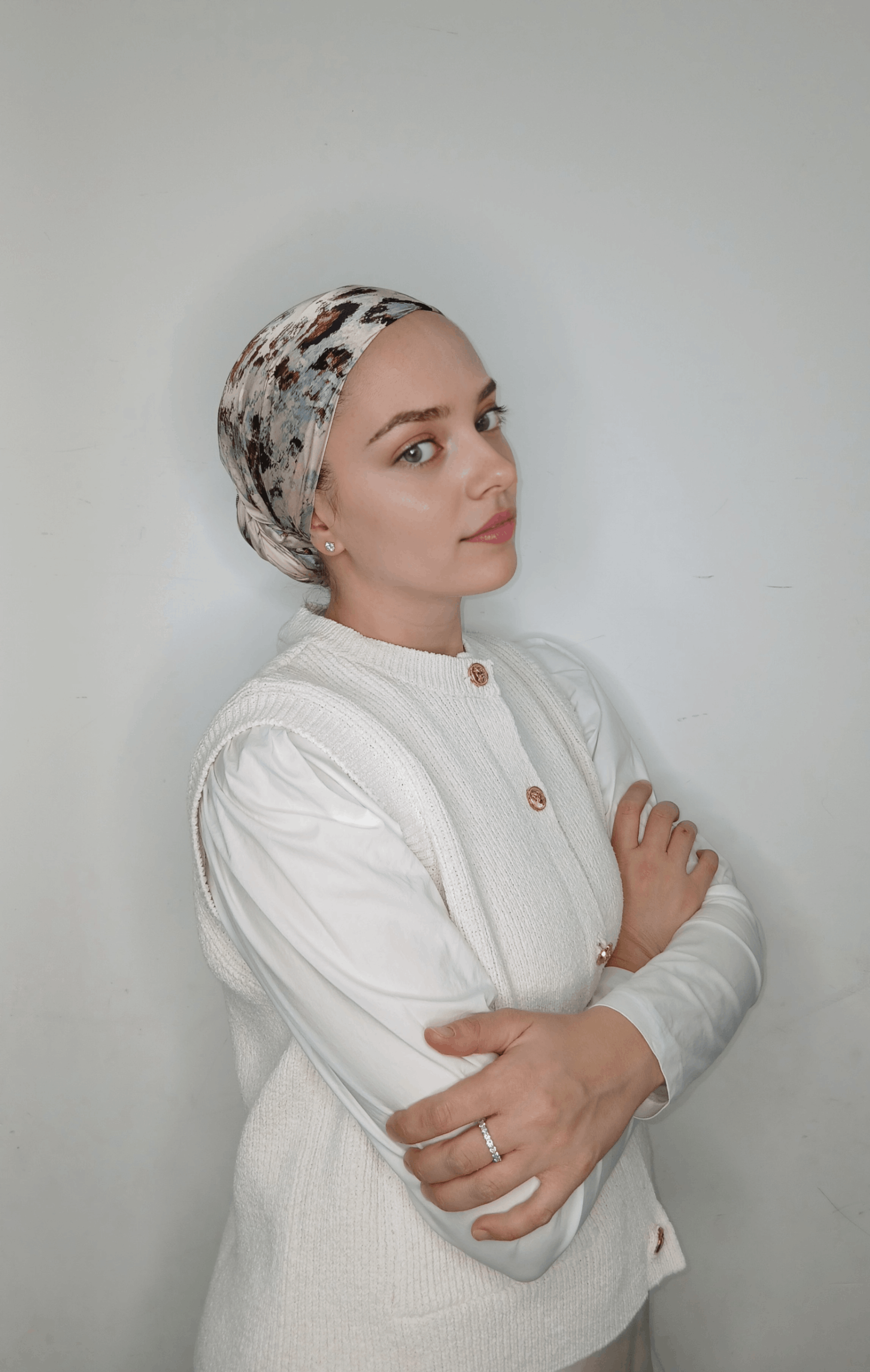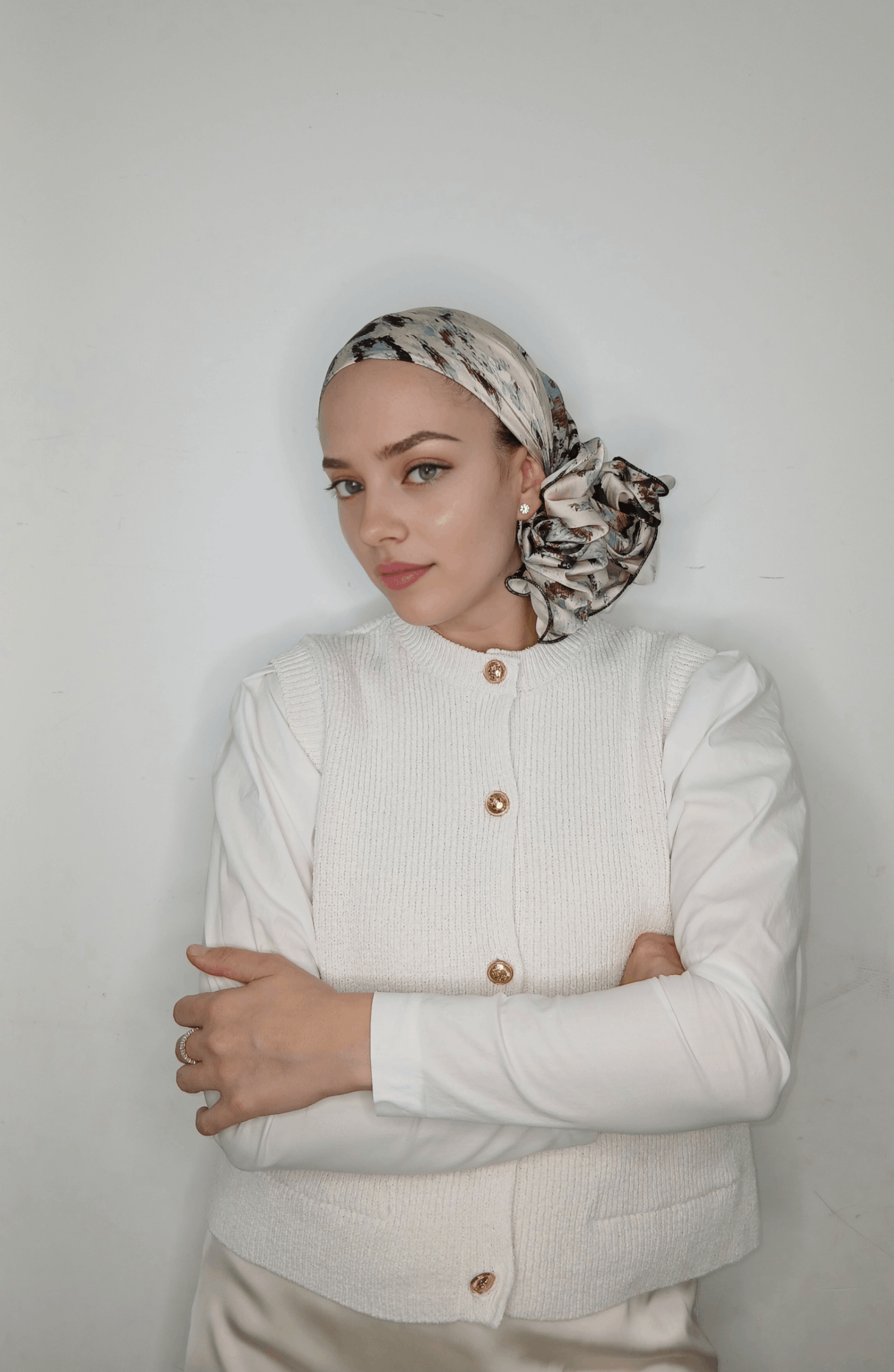 מטפחת סאטן בהדפס מנומר גווני תכלת שמנת וחום חמרה