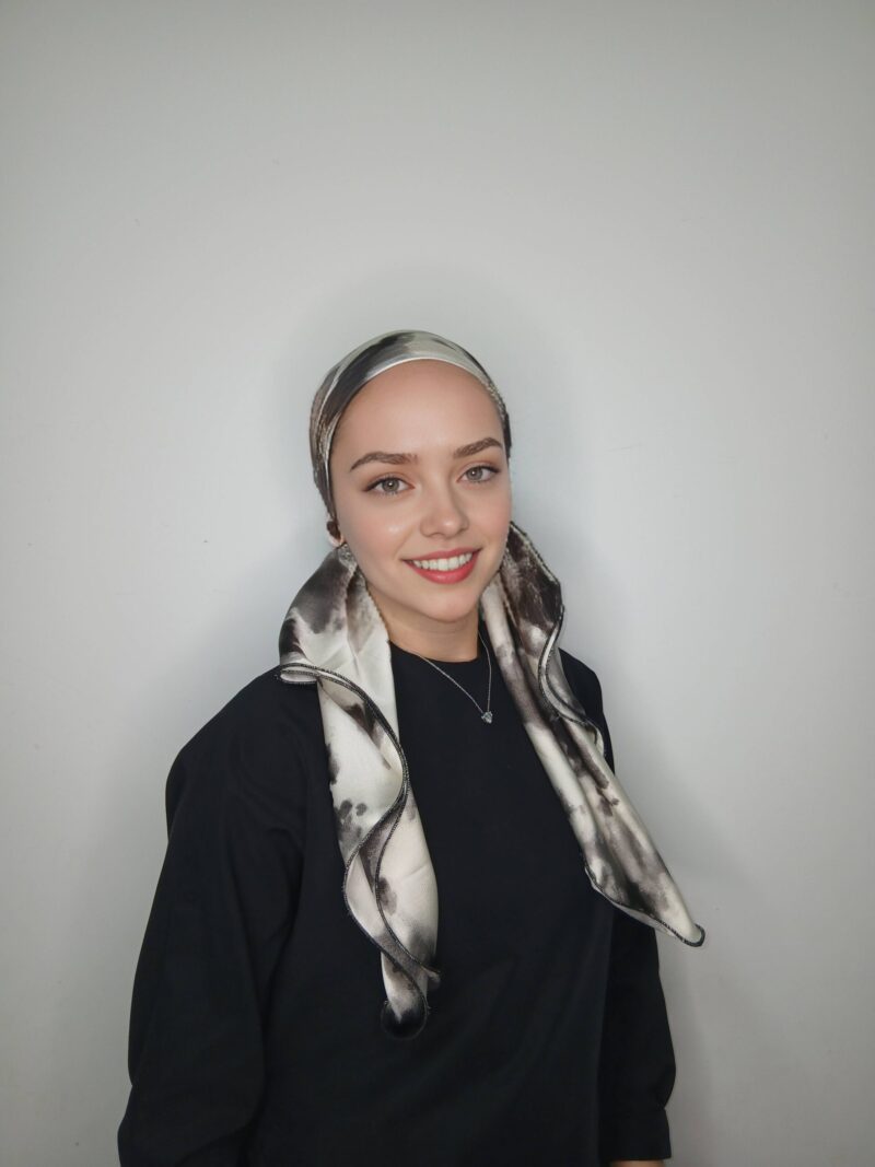 מטפחת קרפ סאטן בהדפס תאי דאי בגווני שחור לבן