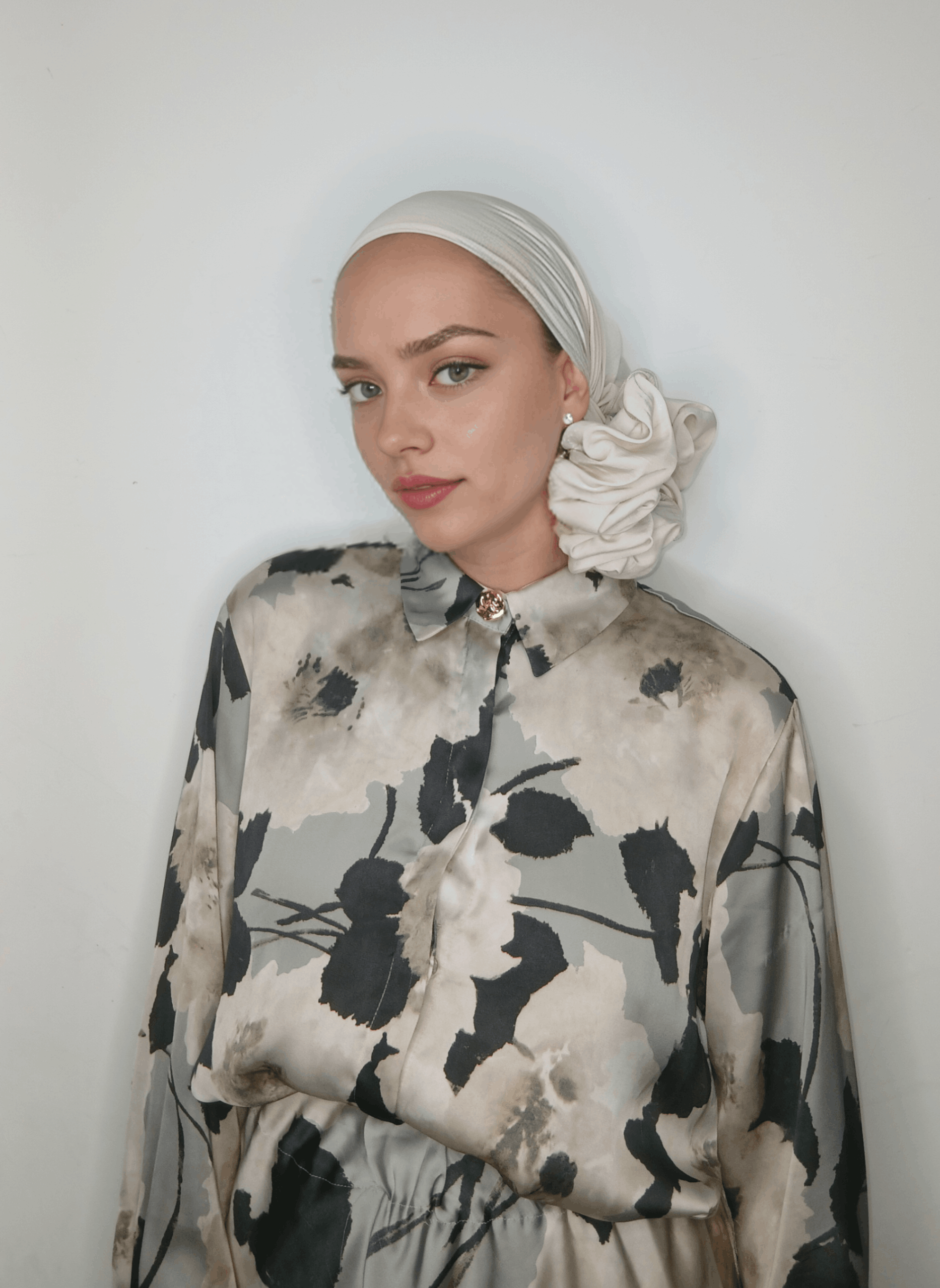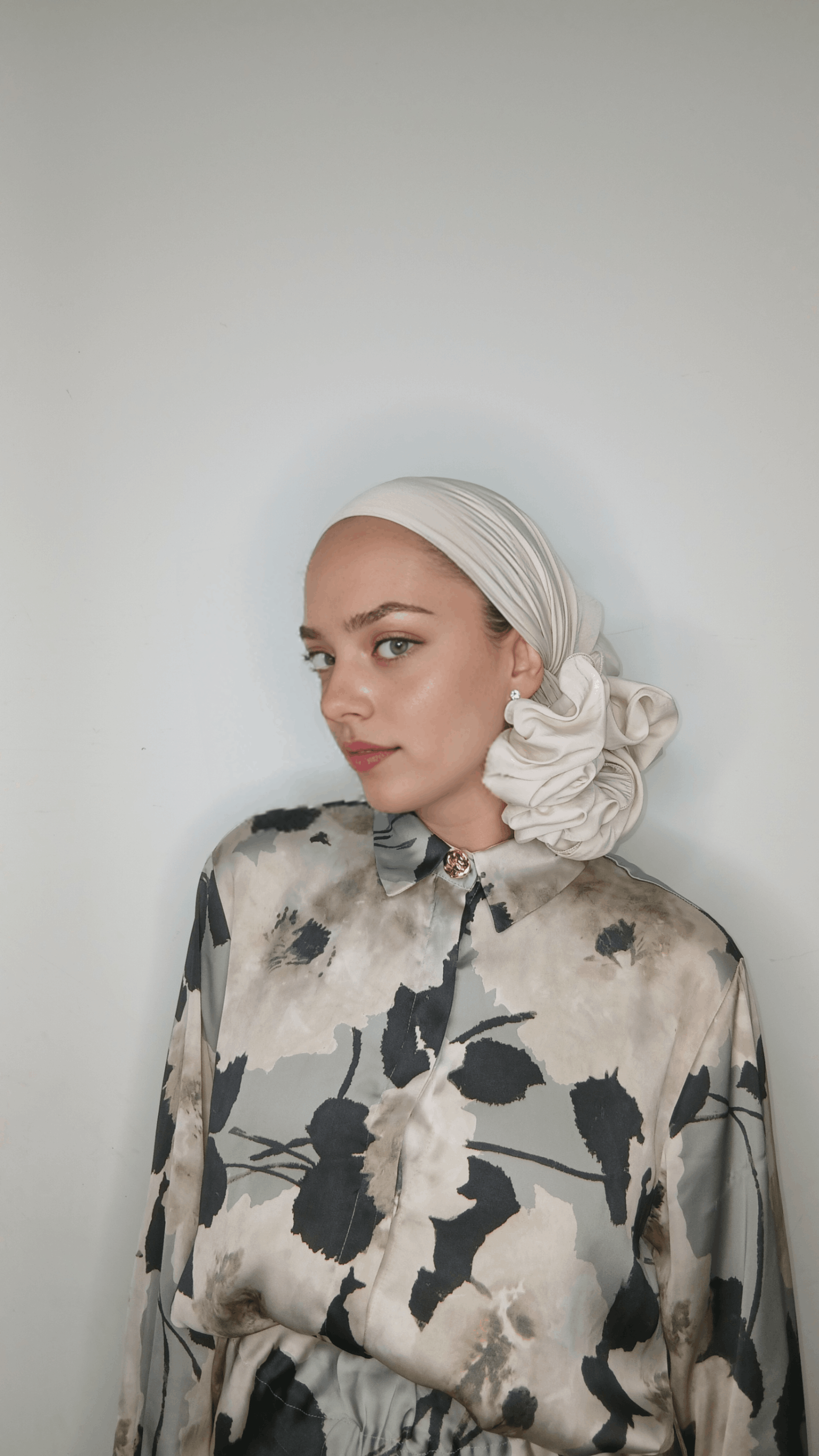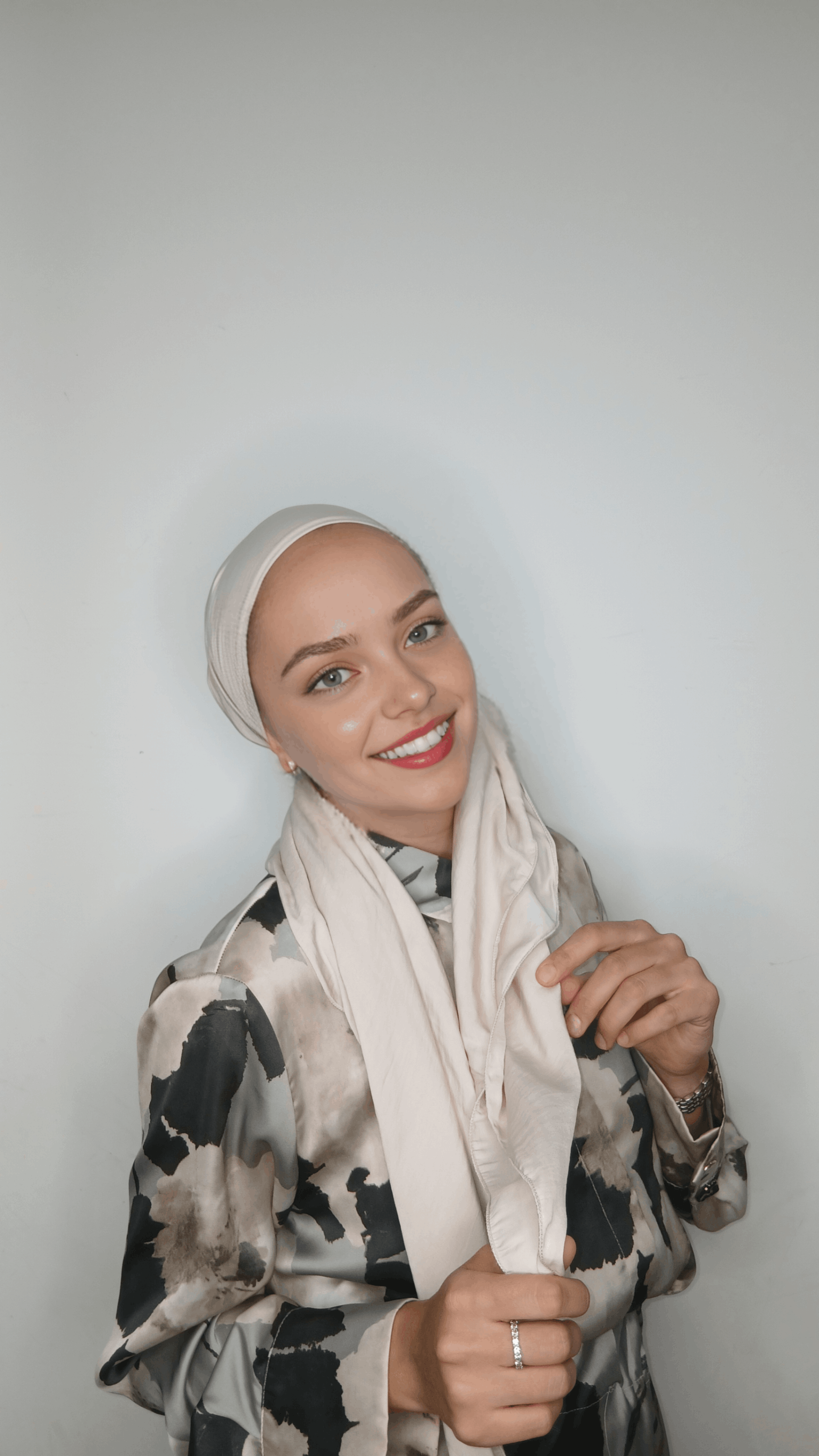 מטפחת קרפ סאטן בגוון אבן בהיר חלק