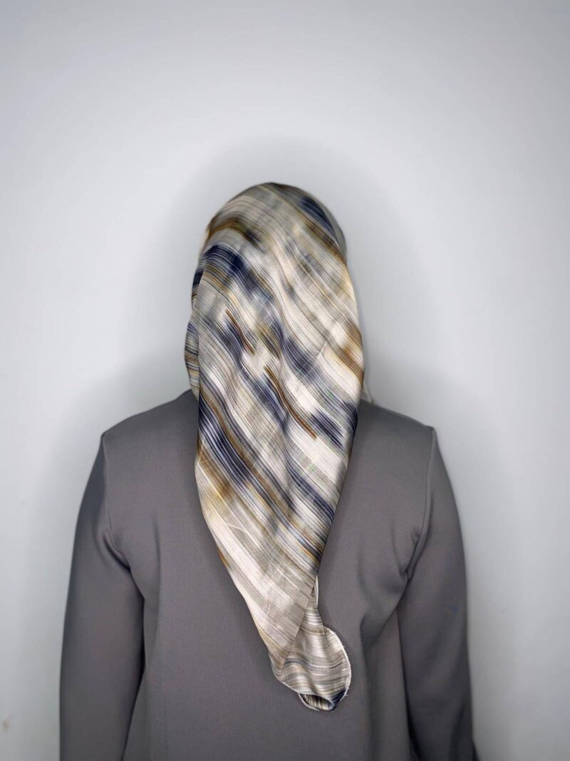 מטפחת שיפון בגווני אפור ושמנת עם חוטי זהב נוצצים לאורך המטפחת