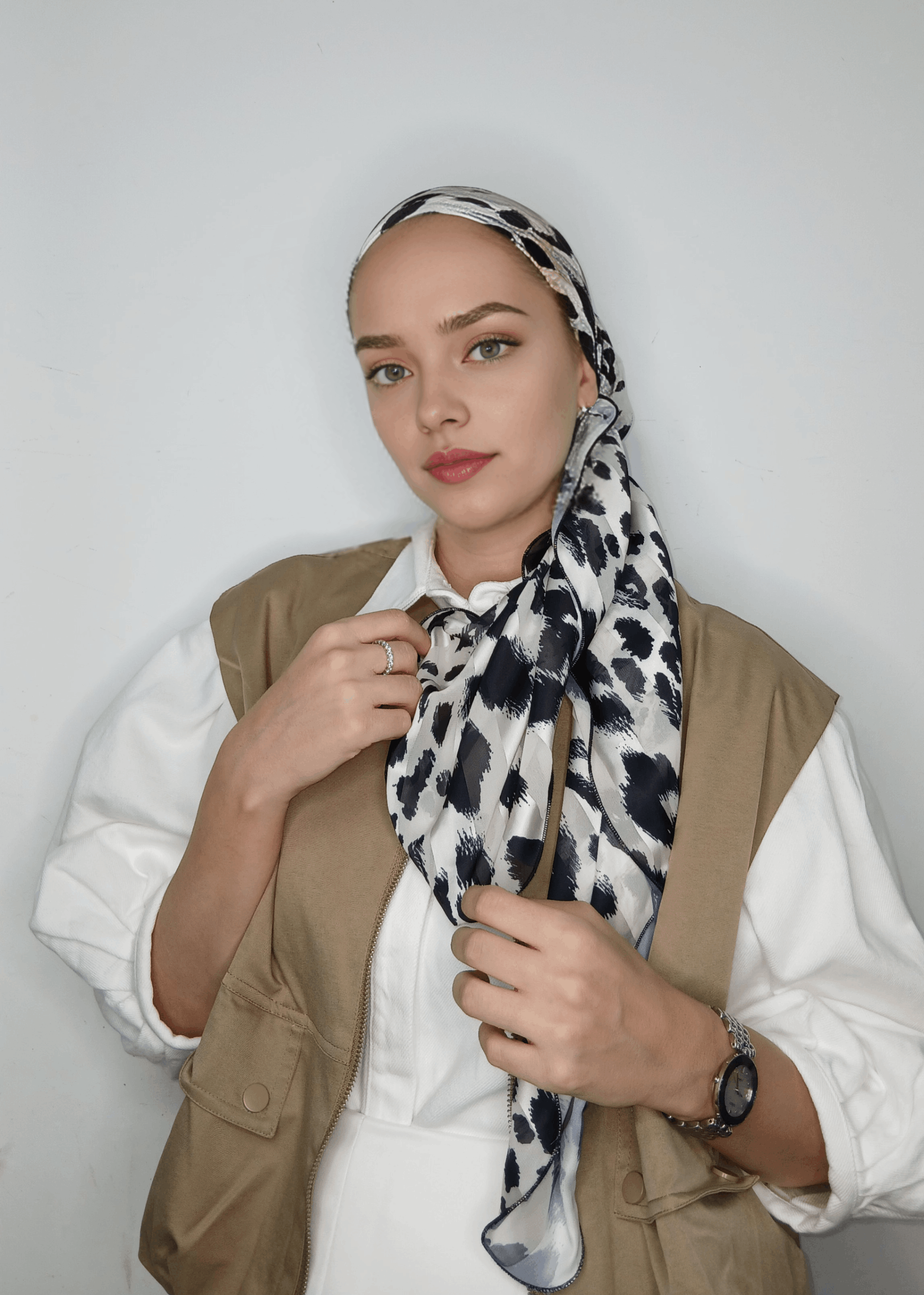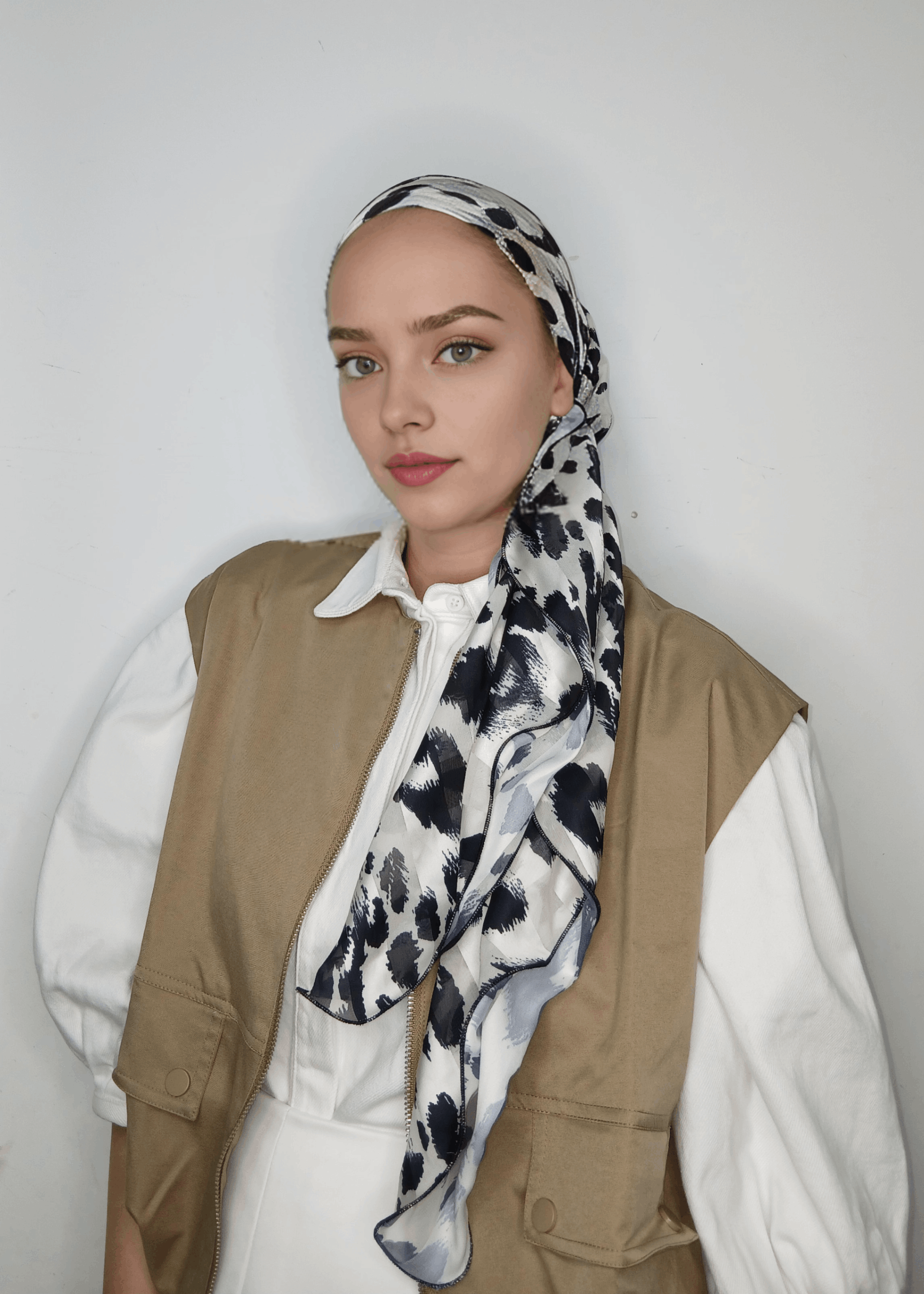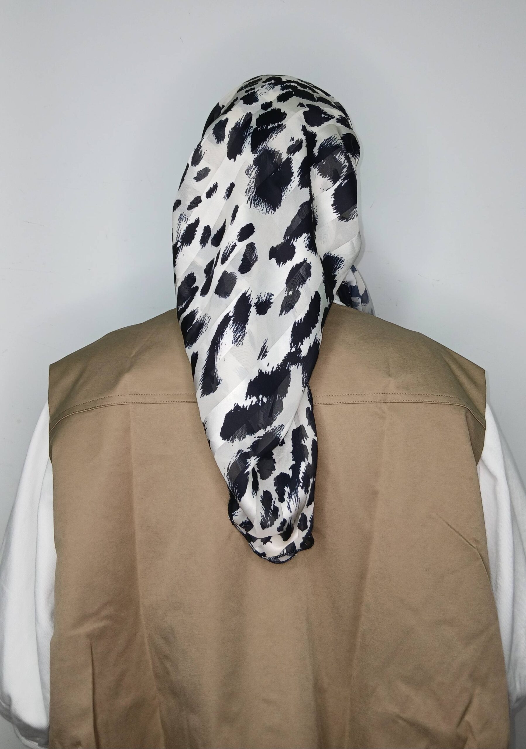 מטפחת שיפון הדפס שחור לבן מנומר עדין , נקשר יפה ונוח