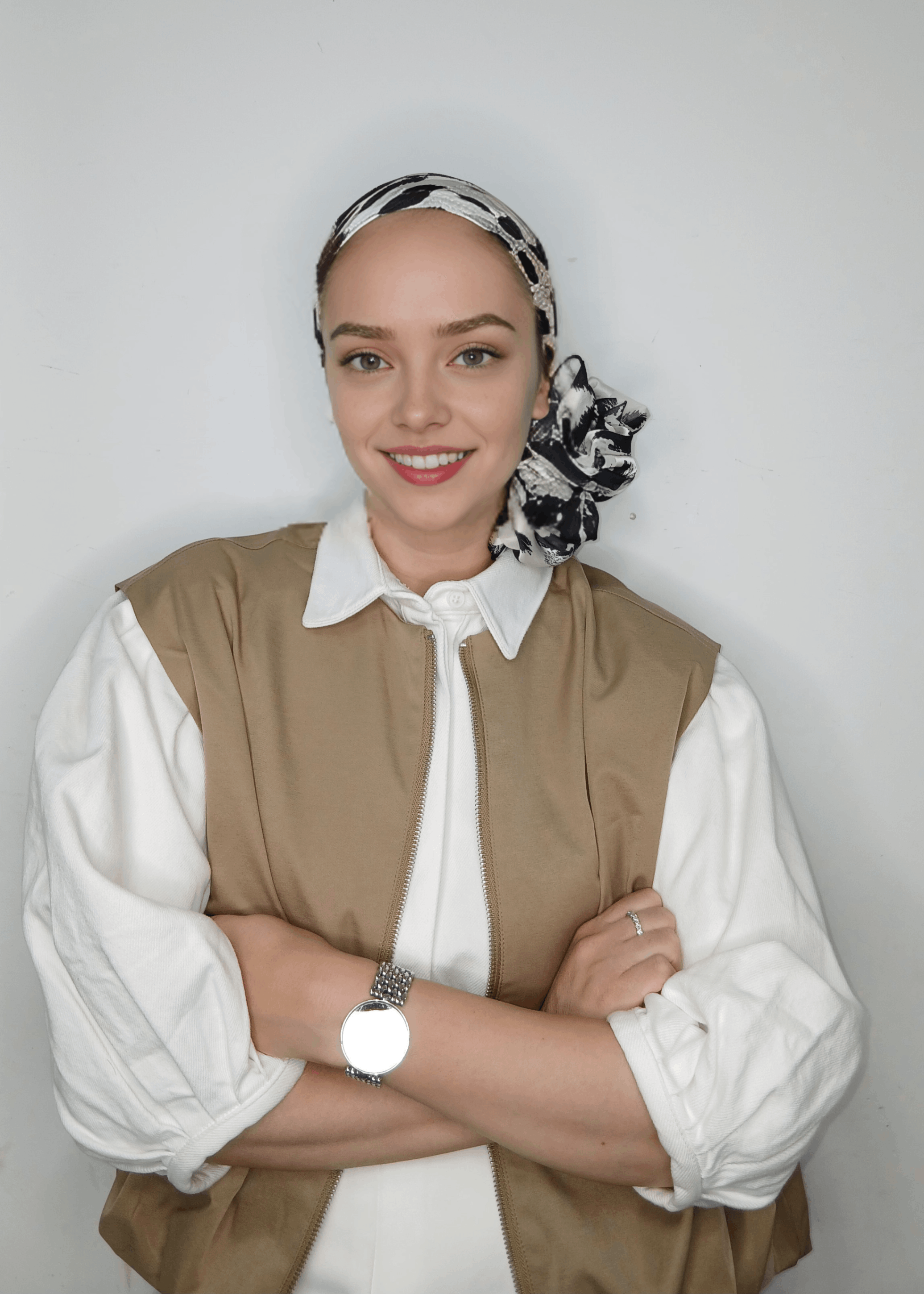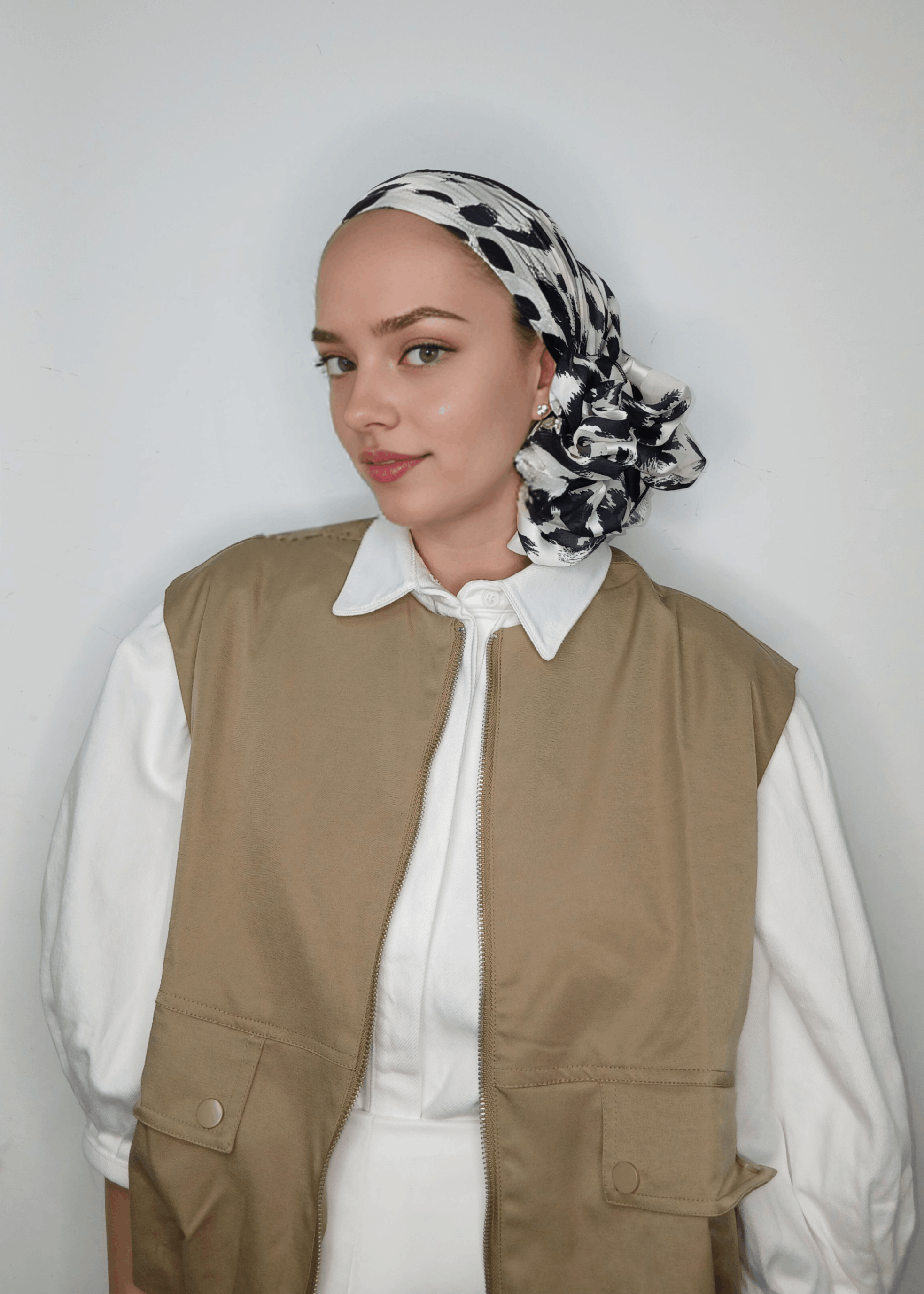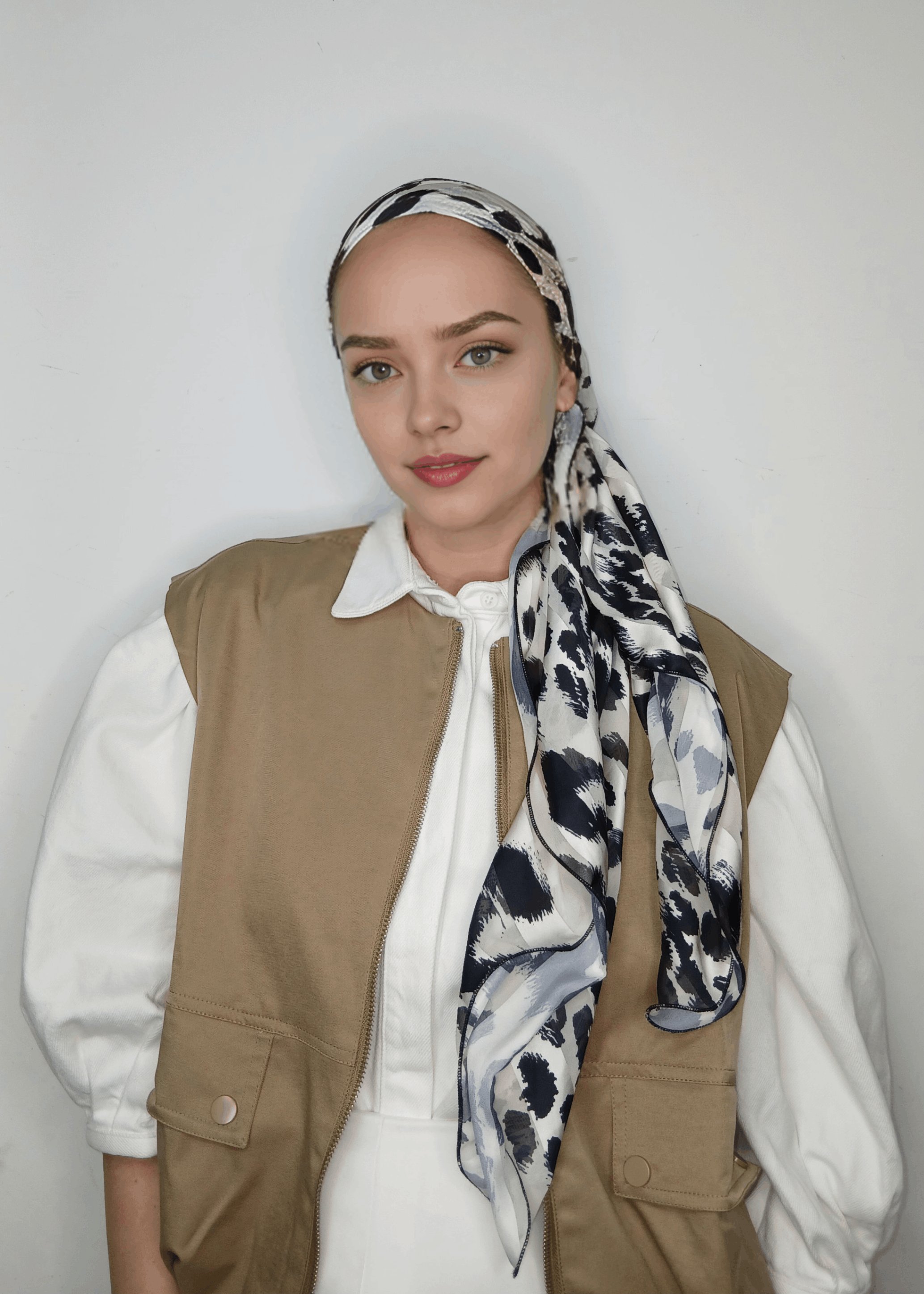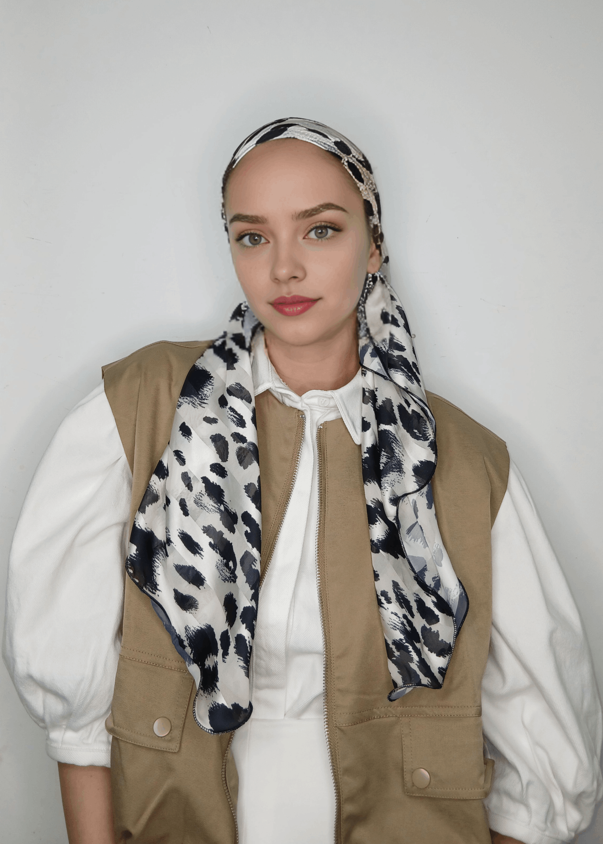 מטפחת שיפון הדפס שחור לבן מנומר עדין , נקשר יפה ונוח