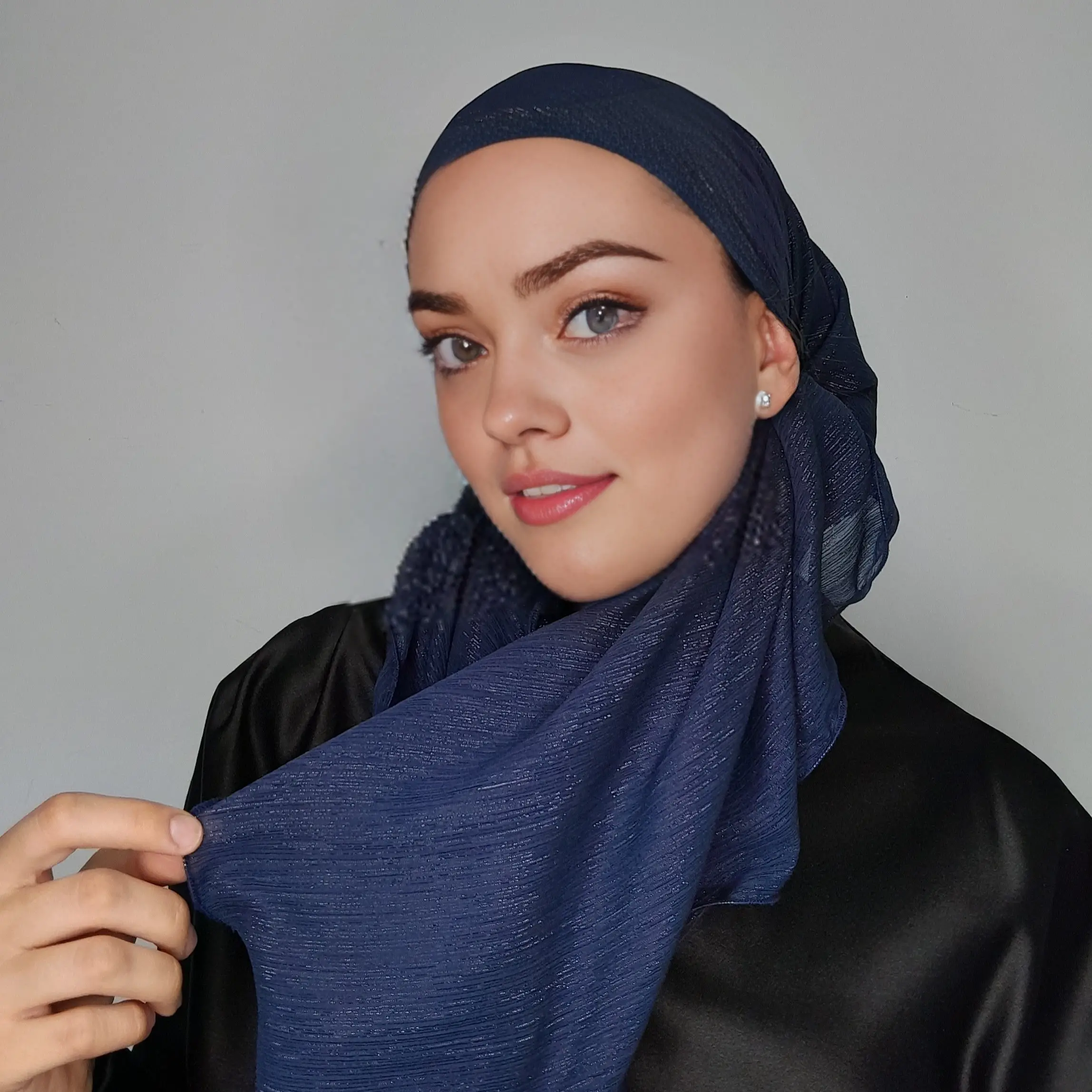 מטפחת בצבע כחול עם נצנוץ , חגיגית , נקשרת מושלם