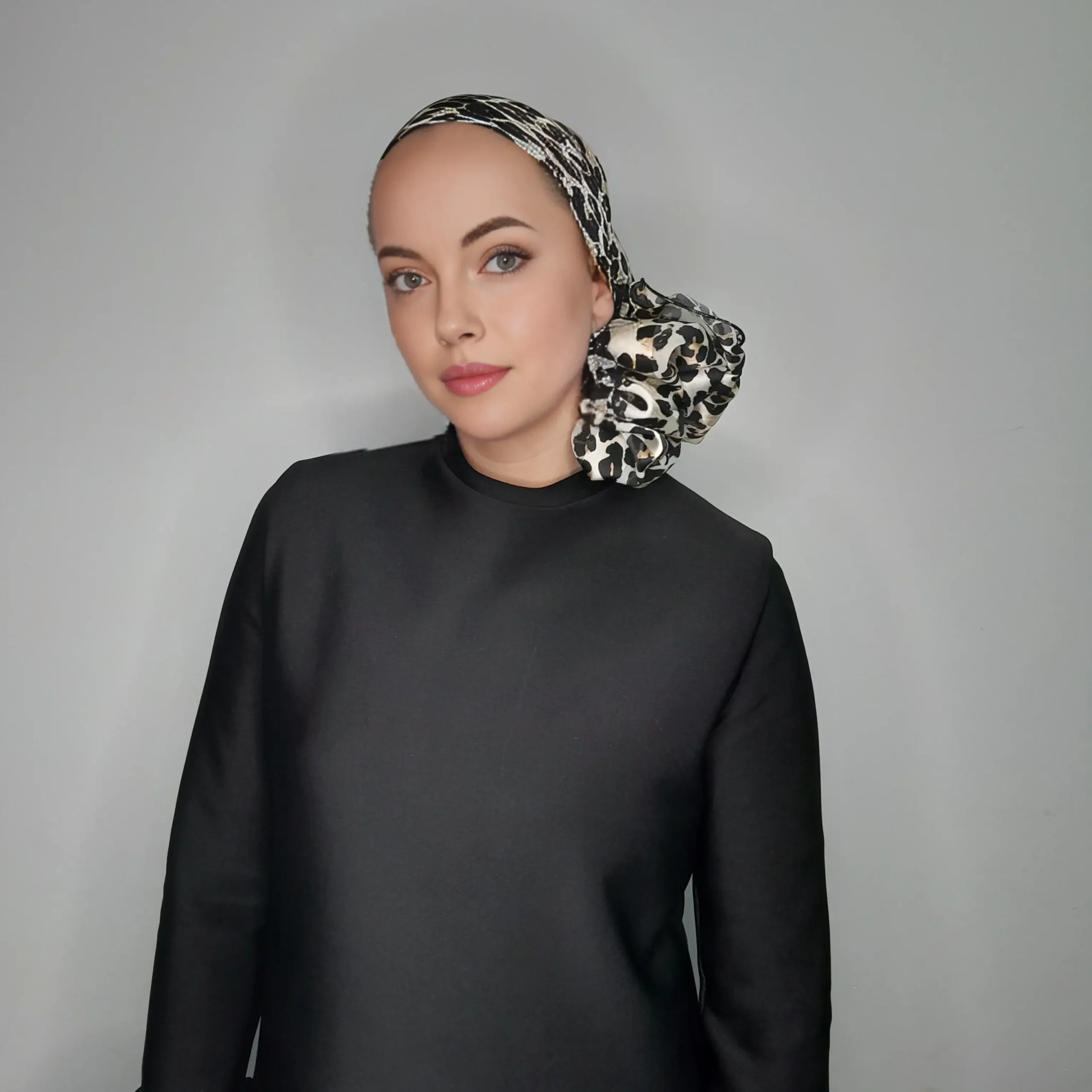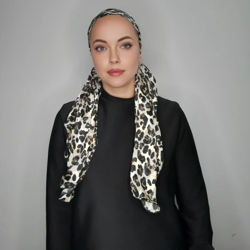 מטפחת שיפון חגיגית , בהדפס מנומר עם פסים שקופים מיוחדים