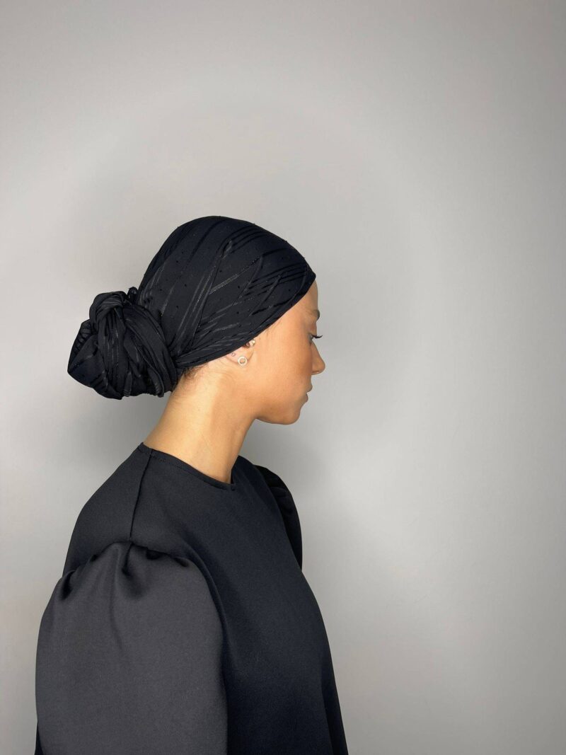 מטפחת שיפון עם נצנוץ עדין בפרינט פסים ונקודות